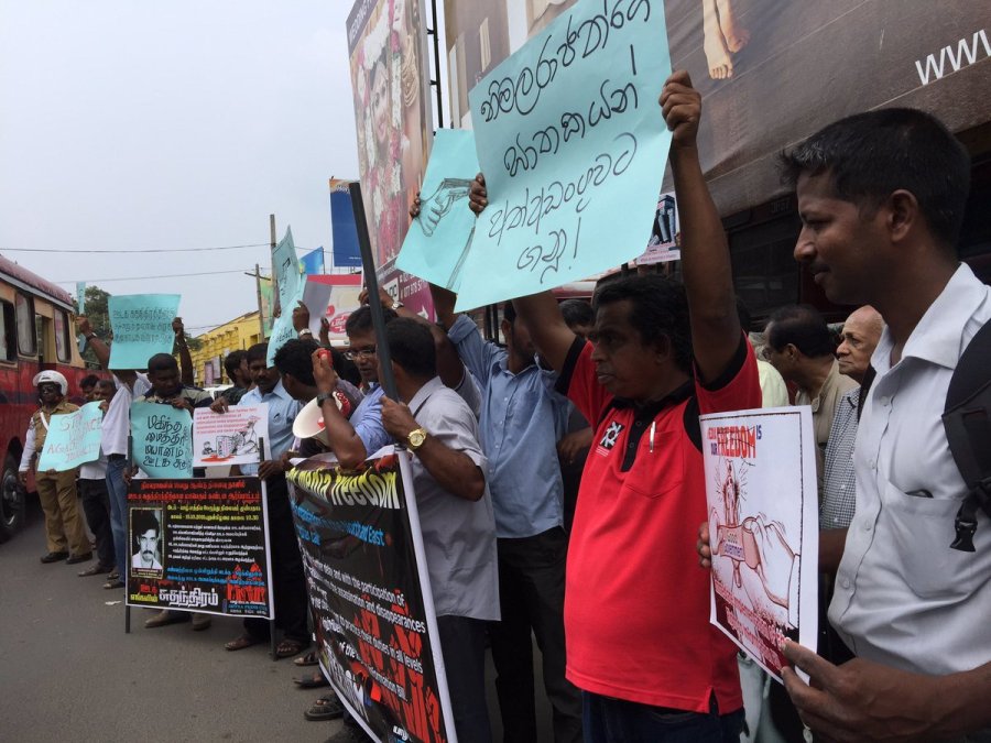 போராட்டத்தில் ஈடுபட்டவர்கள் 2000ஆம் ஆண்டு இதே நாளில் யாழ்ப்பாணத்தில் படுகொலை செய்யப்பட்ட ஊடகவியலாளர் நிமலராஜனின் ஒளிப்படங்களையும், பதாதைகளையும் தாங்கியிருந்தனர் என்பது குறிப்பிடத்தக்கது.