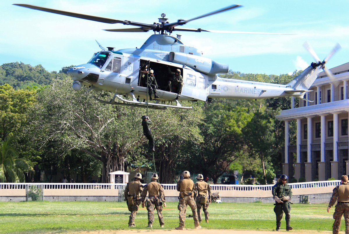 யுஎஸ்எஸ் சோமசெற் கப்பலில் வந்துள்ள, அமெரிக்க கடற்படையின் 11 ஆவது மரைன் நடவடிக்கை படைப்பிரிவு இந்தப் பயிற்சிகளை வழங்கி வருகிறது.