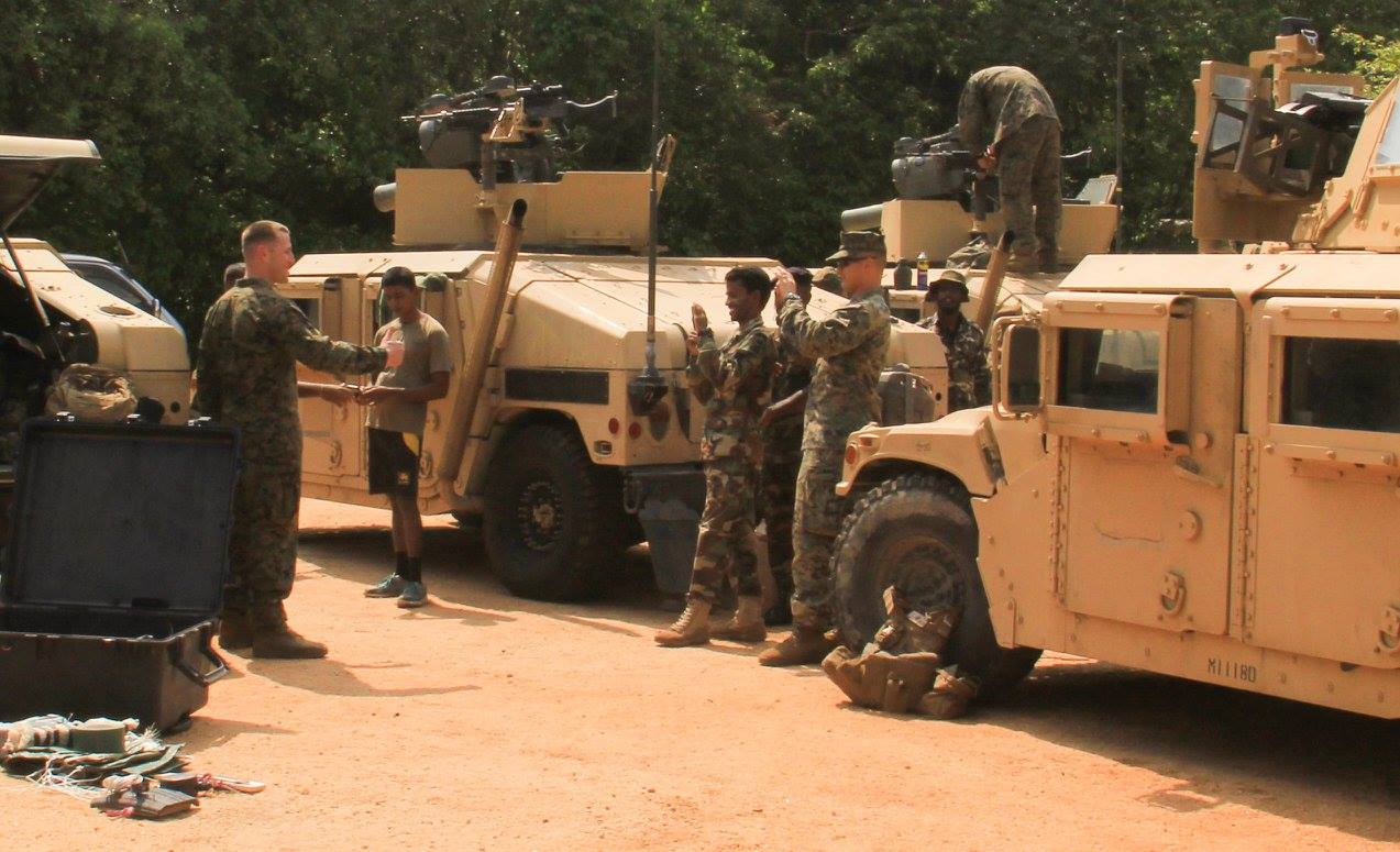 நேற்றுமுன்தினம், தரையிறக்கப் பயிற்சிகளை மேற்கொள்ள அமெரிக்க – சிறிலங்கா மரைன் படைப்பிரிவுகள் நேற்று காட்டுப் பகுதிக்குள், முகாமிட்டு, கண்ணிவெடிகளை அகற்றும், மற்றும் தாக்குதல்களில் ஈடுபடும் பயிற்சிகளை மேற்கொண்டன.