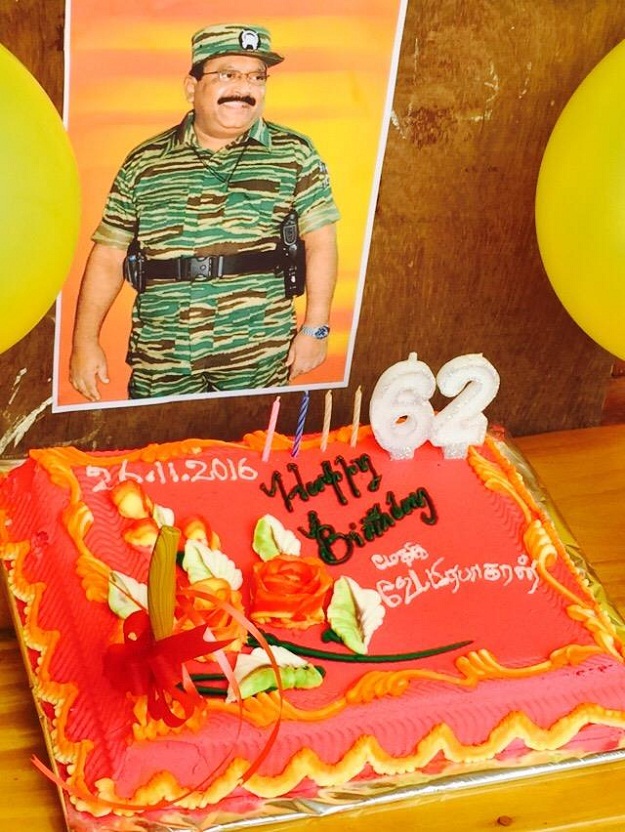 யாழ்.பல்கலைக்கழக கைலாசபதி கலையரங்கின் முன்பாக, அலங்கரிக்கப்பட்ட இடத்தில் பிரபாகரனின் உருவப்படம் வைக்கப்பட்டு, கேக் வெட்டி கொண்டாடப்பட்டது.