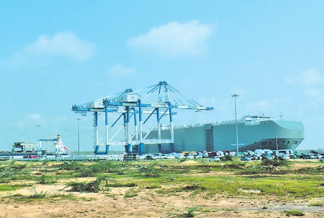 Hyperion Highway என்ற இந்த ஜப்பானிய கொள்கலன் கப்பலில், 7000 கார்கள் இந்தியாவில் இருந்து மத்திய கிழக்கு மற்றும் ஐரோப்பாவுக்கு எடுத்துச் செல்லப்படுகின்றன.