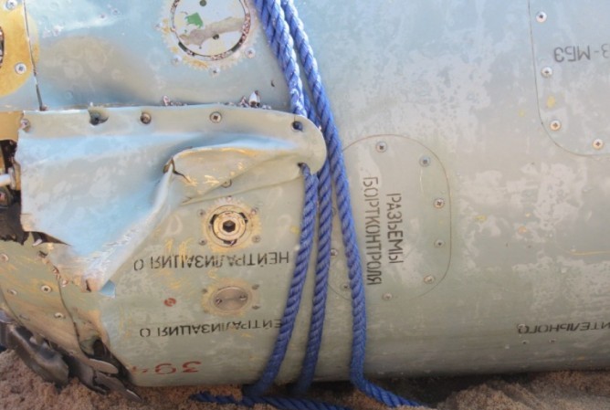 ரஷ்ய மொழியை ஒத்த எழுத்துக்கள் இலக்கங்களும் எழுதப்பட்டுள்ளதால், இது ரஷ்யத் தயாரிப்பு வான்கலம் ஒன்றின் பாகமாக இருக்கக் கூடும்.