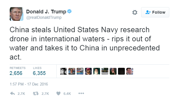 அத்துடன் தெரிவு செய்யப்பட்ட அமெரிக்க அதிபர் டொனால்ட் ட்ரம்ப் அவர்கள் கூட கீச்சக (ருவிட்டர்) பாவனையில் அவர் விட்ட தவறுகளால் தேர்தல் பிரசாரத்தில் கேள்விக்குள்ளானார் என்பது குறிப்பிடத்தக்கதாகும் அண்மையில் தென்சீன கடல் பகுதியில் அமெரிக்க ஆளில்லா நீரடி வேவு கலத்தை சீனர்கள் கைப்பற்றியதையிட்டு ட்ரம்ப் கீச்சகம் (ருவிட்டர்) மூலமே தமது எதிர்ப்பு கருத்தை வெளியிட்டிருந்தார்.