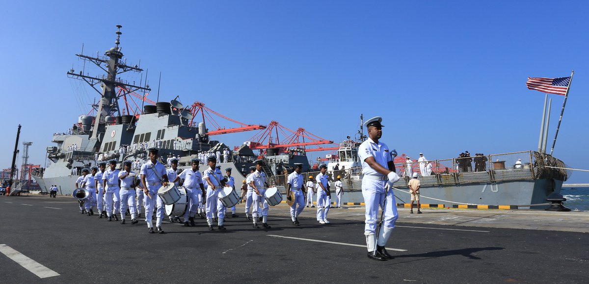அமெரிக்க நாசகாரி கப்பலுக்கு, கொழும்புத் துறைமுகத்தில் சிறிலங்கா கடற்படையினரால் பாரம்பரிய முறைப்படி வரவேற்பு அளிக்கப்பட்டது.