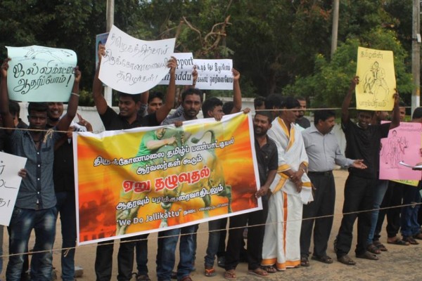 தமிழ்நாட்டில் ஏறு தழுவுதல் விளையாட்டுக்கு விதிக்கப்பட்ட தடைக்கு எதிராக நடத்தப்படும் போராட்டங்களுக்கு ஆதரவு தெரிவித்து இன்று வடக்கு, கிழக்கு, மற்றும் கொழும்பில் பல்வேறு இடங்களில் போராட்டங்கள் நடத்தப்பட்டன.