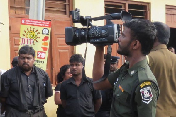 யாழ்ப்பாண மாவட்டச் செயலகம் அருகே நேற்று நடத்தப்பட்ட கருப்புக் கொடி ஏந்திய கவனயீர்ப்புப் போராட்டத்தை சிறிலங்கா இராணுவத்தின் சிறப்புப் படைப்பிரிவை சேர்ந்த ஒருவர் காணொளிப்படம் பிடிக்கும் நடவடிக்கையில் ஈடுபடுத்தப்பட்டிருந்தார்.