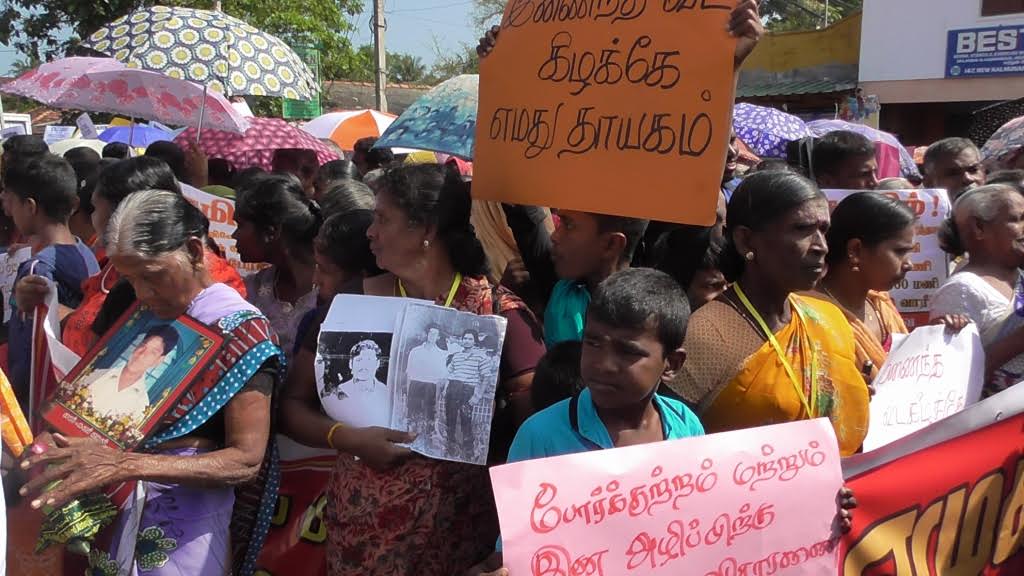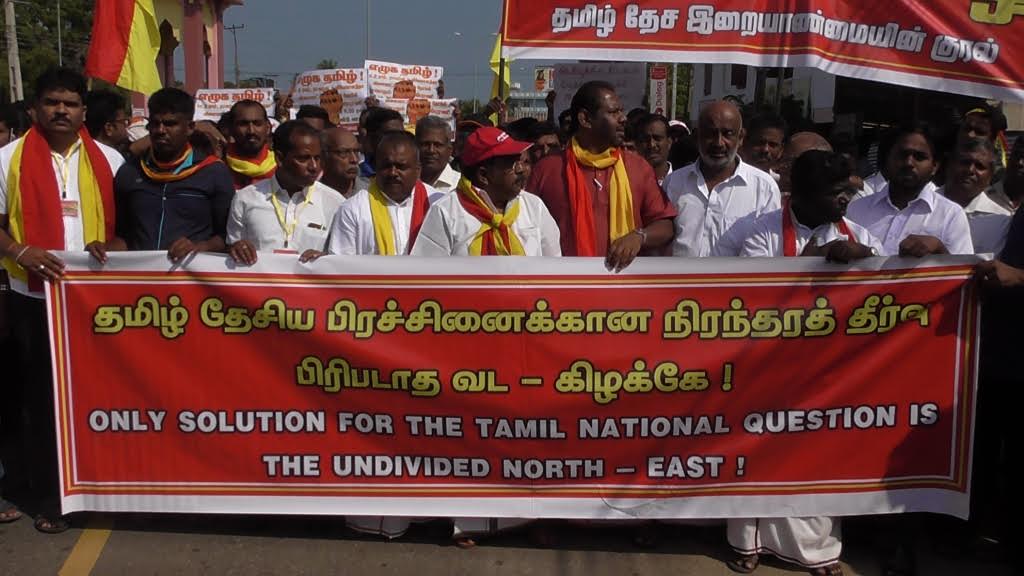 வடக்கு, கிழக்கு இணைப்பு, அரசியல் கைதிகளுக்கு விடுதலை, மக்களின் காணிகளை விட்டு இராணுவமே வெளியேறு, பௌத்த மயமாக்கலை நிறுத்து, காணாமல் ஆக்கப்பட்டவர்கள் எங்கே, ஆகிய ஐந்து விடயங்களை முன்னிறுத்தி, இந்தப் பேரணியில் பங்கேற்றவர்களால், முழக்கங்கள் எழுப்பப்பட்டதுடன், சுலோக அட்டையும் ஏந்திச் செல்லப்பட்டன.