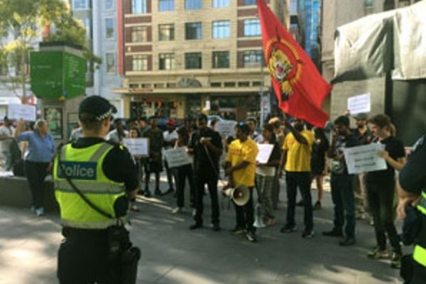சிறிலங்கா பிரதமருக்கு எதிராக மெல்பேர்ணில் சிங்களவர்களும், தமிழர்களும் ஆர்ப்பாட்டம்