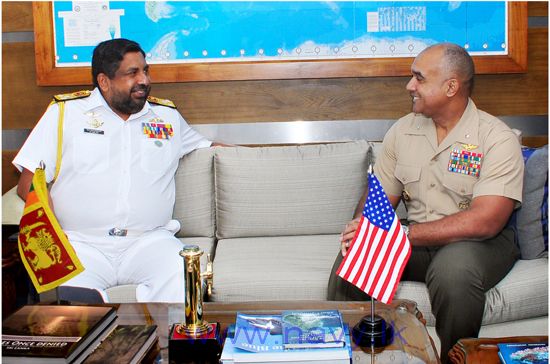 இன்று சிறிலங்கா கடற்படைத் தலைமையகத்துக்குச் சென்ற அமெரிக்க கடற்படையின் பசுபிக் மரைன் படைப்பிரிவின் பிரதிக் கட்டளைத் தளபதி பிரிகேடியர் ஜெனரல் பிரையன் கவனோ உள்ளிட்ட அமெரிக்க படை அதிகாரிகள் சிறிலங்கா கடற்படைத் தளபதி வைஸ் அட்மிரல் ரவீந்திர விஜேகுணரத்னவைச் சந்தித்துப் பேச்சு நடத்தினர்.