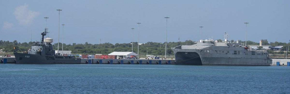 USNS Fall River (2)அம்பாந்தோட்டையில் போல் ரிவர் என்ற அதிவேக போக்குவரத்துக் கப்பலில் வந்த அமெரிக்க கடற்படையினர், ஜப்பான், அவுஸ்ரேலியா மற்றும் சிறிலங்கா கடற்படை மற்றும் சிவில் அதிகாரிகளுடன் இணைந்து கூட்டுப் பயிற்சியை ஆரம்பித்துள்ளனர்.