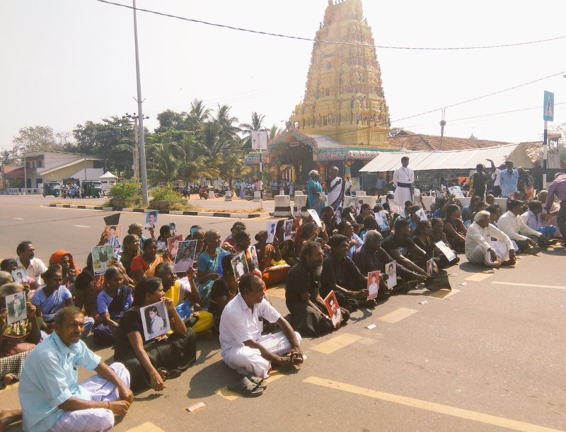இதனிடையே கிளிநொச்சியிலும், வவுனியாவிலும், தொடர் போராட்டங்களில் ஈடுபட்டு வந்த காணாமல் போனவர்களின் உறவுகள் இன்று ஏ-9 வீதியை மறித்து கொளுத்தும் வெயிலில் போராட்டத்தில் ஈடுபட்டிருந்தனர்.