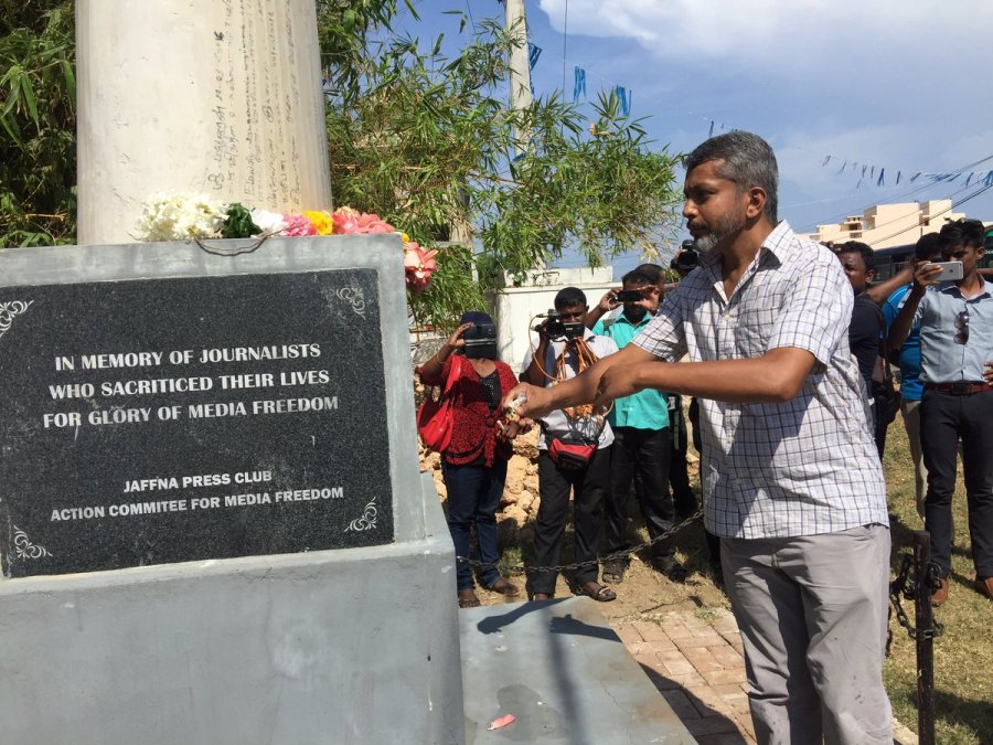 இன்று பிற்பகல் 2.30 மணியளவில் யாழ். நகரில் பிரதான வீதியில் அமைந்துள்ள படுகொலை செய்யப்பட்ட ஊடகவியலாளர்களின் நினைவுத் தூபியில் அஞ்சலி செலுத்தப்பட்ட பின்னர், யாழ். பேருந்து நிலையம் முன்பாக இந்தப் போராட்டம் நடத்தப்பட்டது.