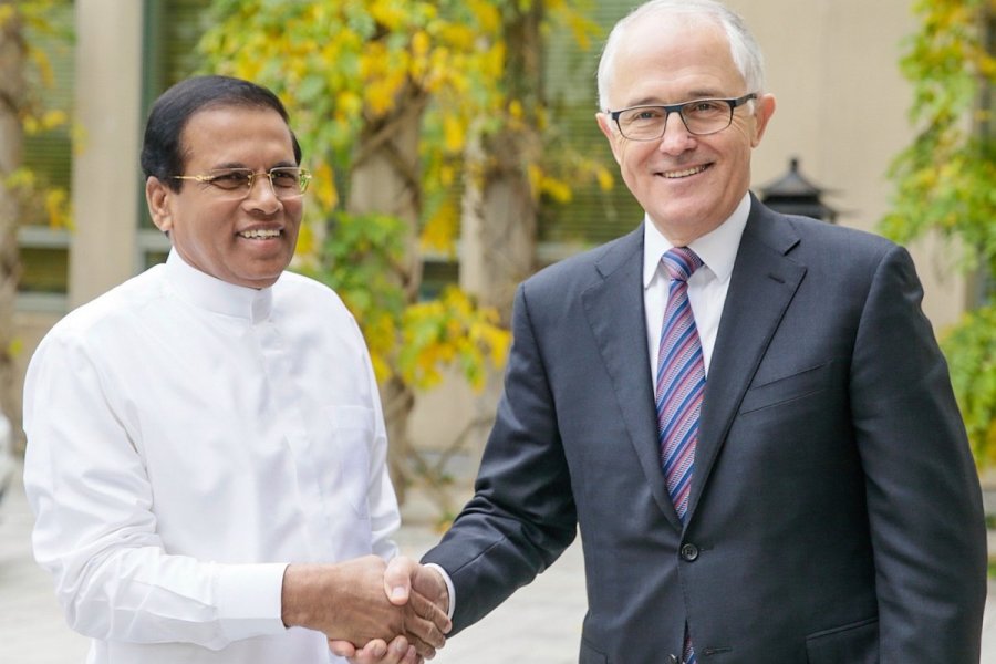 maithripala- Malcolm Turnbull (1)அவுஸ்ரேலியாவுக்குப் பயணம் மேற்கொண்டுள்ள சிறிலங்கா அதிபர் மைத்திரிபால சிறிசேன இன்று அவுஸ்ரேலியப் பிரதமர் மல்கம் ரேன்புல்லை சந்தித்துப் பேச்சுக்களை நடத்தினார்.