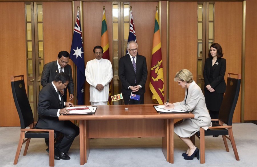 அவுஸ்ரேலியா- சிறிலங்கா இடையே ஒத்துழைப்பை வலுப்படுத்துவது தொடர்பான கூட்டுப் பிரகடனத்தில் அவுஸ்ரேலிய வெளிவிவகார அமைச்சர் ஜூலி பிசப்பும், சிறிலங்காவின் பிரதி வெளிவிவகார அமைச்சர் ஹர்ஷ டி சில்வாவும் கையெழுத்திட்டனர்.