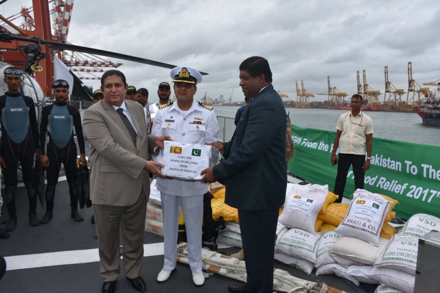 இயற்கை அனர்த்தங்களால் பாதிக்கப்பட்ட சிறிலங்கா மக்களுக்கான அவசர உதவிப் பொருட்களுடன் பாகிஸ்தான் கடற்படைக் கப்பல் இன்று கொழும்புத் துறைமுகத்தை வந்தடைந்துள்ளது.