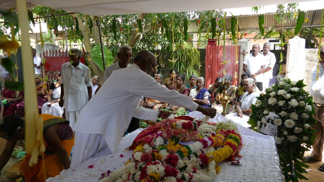 தொடர்ந்து இடம்பெற்று இறுதிச்சடங்குகளை அடுத்து நேற்று பிற்பகல் 2.30 மணியளவில் கொக்குவில் இந்து மயானத்தில் அவரது உடல் தகனம் செய்யப்பட்டது.