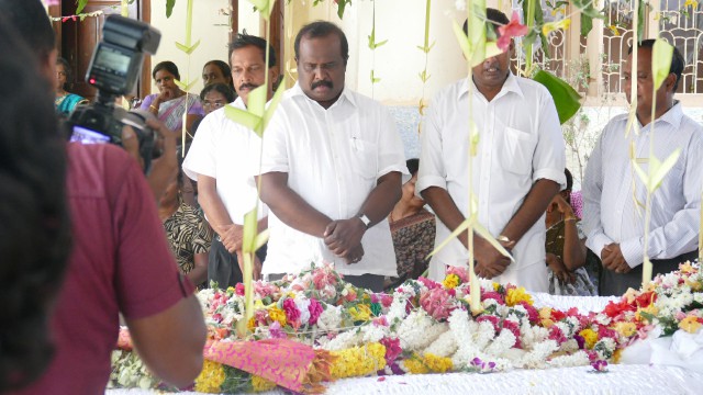 இறுதி நிகழ்வுகளில் தமிழ் தேசியக் கூட்டமைப்பின் நாடாளுமன்ற உறுப்பினர்களான மாவை சேனாதிராசா, தர்மலிங்கம் சித்தார்த்தன், எம்.ஏ.சுமந்திரன், செல்வம் அடைக்கலநாதன், ஈ.சரவணபவன், சிவசக்தி ஆனந்தன் மற்றும் முன்னாள் நாடாளுமன்ற உறுப்பினர்களான சுரேஸ் பிரேமச்சந்திரன், என்.சிறீகாந்தா, தமிழர் விடுதலைக் கூட்டணியின் செயலாளர் நாயகம் வீ.ஆனந்தசங்கரி, வட மாகாணசபை உறுப்பினர்கள் எம்.கே.சிவாஜிலிங்கம், பா.கஜதீபன், சுகிர்தன், சயந்தன், பரஞ்சோதி, ஆர்னோல்ட், சர்வேஸ்வரன் வடமாகாண எதிர்க்கட்சித் தலைவர் தவராசா, வடமாகாண அவைத்தலைவர் சி.வி.கே.சிவஞானம், வட மாகாண கல்வி அமைச்சர் குருகுலராஜா, யாழ். மேல்நீதிமன்ற நீதிபதி இளஞ்செழியன், வட மாகாண ஆளுநர் ரெஜினோல்ட் குரே, கிழக்கு மாகாண அமைச்சர் துரைராஜசிங்கம் உள்ளிட்ட பலரும் பங்கேற்று இறுதி வணக்கம் செலுத்தினர்.