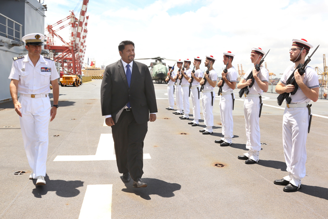 இதன் போது பிரெஞ்சுக் கடற்படையினர் தமது போர்க்கப்பலில் சிறிலங்கா பாதுகாப்பு இராஜாங்க அமைச்சருக்கு அணிவகுப்பு மரியாதையை அளித்திருந்தனர்.