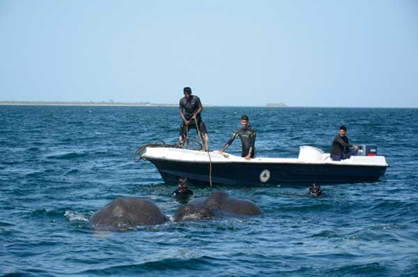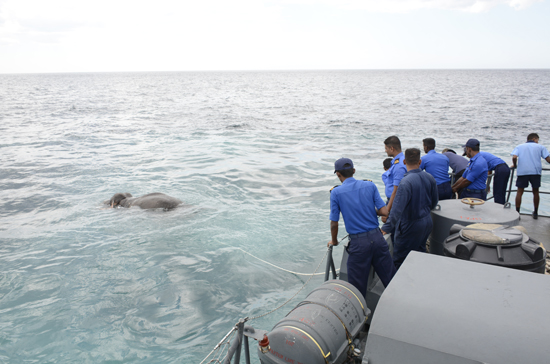 முல்லைத்தீவு கொக்குத்தொடுவாய் கரையில் இருந்து 8 கடல் மைல் தொலைவில் கடலில் தத்தளித்துக் கொண்டிருந்த யானை ஒன்றை கடந்த ஜூலை 11ஆம் நாள் சிறிலங்கா கடற்படையினர் மீட்டு கரைசேர்த்திருந்தனர் .