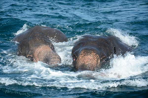 கடலுக்குள் அடித்துச் செல்லப்பட்ட இரண்டு யானைகள் திருகோணமலை வட்டத்தீவுக்கும் பவுல் முனைக்கும் இடையில் கடலில் தத்தளித்துக் கொண்டிருந்தன.