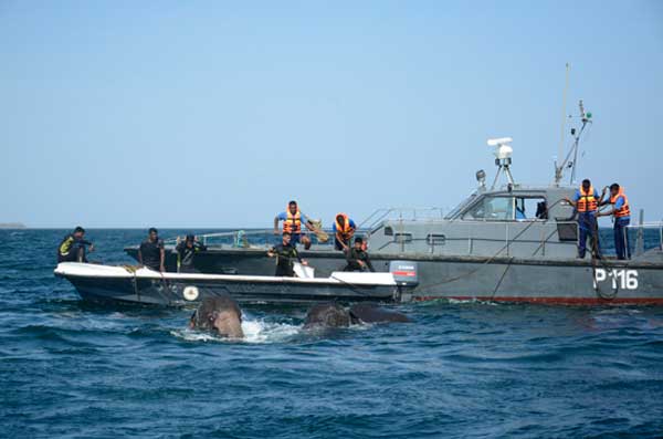 திருகோணமலை கடலில் தத்தளித்த 2 யானைகளை மீட்டது சிறிலங்கா கடற்படை