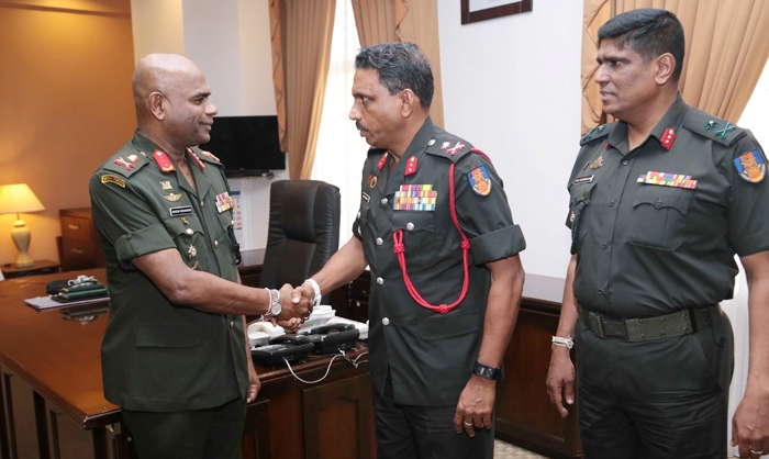இராணுவத் தலைமை அதிகாரியாக மேஜர் ஜெனரல் அமல் கருணாசேகர பதவியேற்ற பின்னர், அங்கு திடீரென வந்த சிறிலங்கா இராணுவத் தளபதி லெப். ஜெனரல் மகேஸ் சேனநாயக்க அவருக்கு வாழ்த்துக்களைத் தெரிவித்தார்.