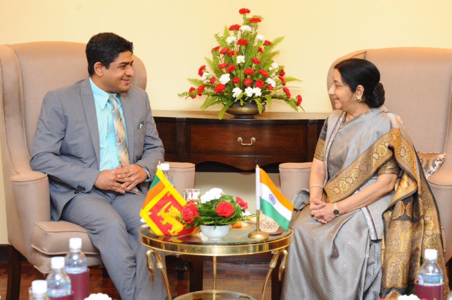 இந்திய வெளிவிவகார அமைச்சர் சுஸ்மா ஸ்வராஜூடன் சிறிலங்காவின் வெளிவிவகார இராஜாங்க அமைச்சர் வசந்த சேனநாயக்க நேபாளத்தில் சந்தித்துப் பேச்சு நடத்தியுள்ளனர்.