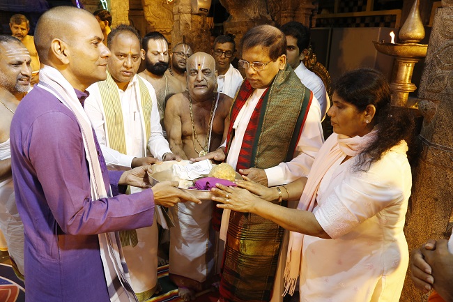 இன்று அதிகாலை அவர்கள் ஏழுமலையான் ஆலயத்தில் சுப்ரபாத சேவையின் போது வழிபாடுகளை மேற்கொண்டனர்.