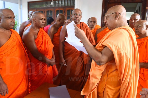 இப்போதைய சூழலுக்குப் புதிய அரசியலமைப்பு பொருத்தமில்லை என்பதால், வழிநடத்தல் குழுவினால் தயாரிக்கப்பட்ட இடைக்கால அறிக்கையை தற்காலிகமாக விலக்கிக் கொள்ள வேண்டும் என்று கோட்டே, சிறி கல்யாணி சமக்ரி தர்ம மகாசங்க சபாவின், கல்யாணி காரக சபா ஒருமனதாக தீர்மானித்துள்ளது.
