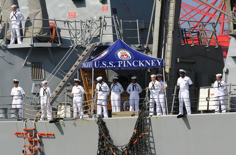 155 மீற்றர் மீற்றர் நீளம் கொண்ட நாசகாரி போர்க்கப்பலான, யுஎஸ்எஸ் பின்க்னியில் 380 கடற்படையினர் பணியாற்றுகின்றனர்.