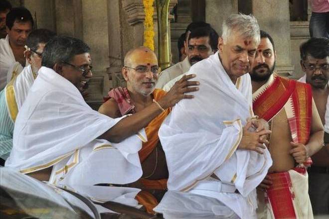 தனது துணைவியார் மைத்ரி விக்கிரமசிங்கவுடன், ஆலயத்துக்கு வந்த சிறிலங்கா பிரதமருக்கு நிர்வாகத்தின் சார்பில் சிறப்பு வரவேற்பு அளிக்கப்பட்டது.