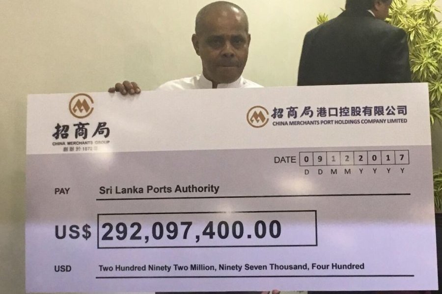 இன்று அம்பாந்தோட்டை துறைமுகத்தை பொறுப்பேற்ற சீன நிறுவனம், சிறிலங்கா அரசாங்கத்துக்கு வழங்க வேண்டிய முதற்கட்டக் கொடுப்பனவான, 293 மில்லியன் டொலரை கையளித்துள்ளது.