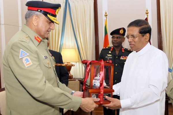 சிறிலங்காவுக்குப் பயணம் மேற்கொண்டுள்ள பாகிஸ்தான் இராணுவத் தளபதி ஜெனரல் ஜாவிட் பஜ்வா, சிறிலங்கா அதிபர் மைத்திரிபால சிறிசேன, பிரதமர் ரணில் விக்கிரமசிங்க, மற்றும் பாதுகாப்புச் செயலர் கபில வைத்தியரத்ன ஆகியோரை தனித்தனியாகச் சந்தித்துப் பேச்சு நடத்தியுள்ளார்.