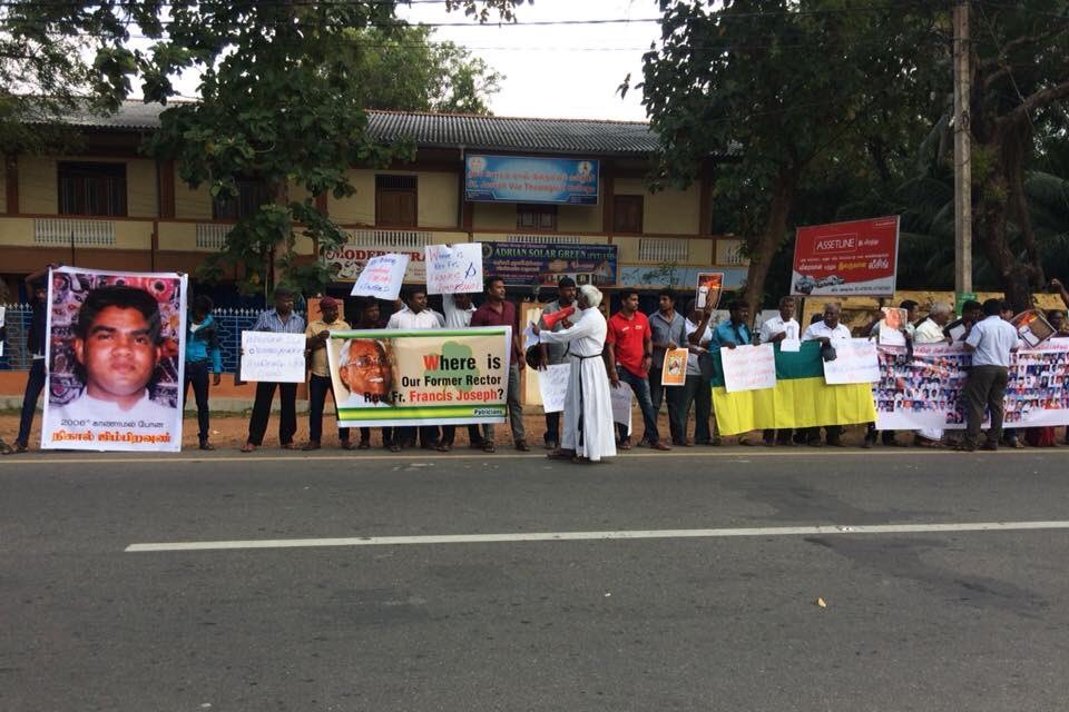 இந்த நிகழ்வுக்கு வரும் சிறிலங்கா அதிபருக்கு எதிர்ப்புத் தெரிவித்தும், இறுதிப் போரின் போது சிறிலங்கா படையினரிடம் சரணடைந்து காணாமல் ஆக்கப்பட்ட அருட்தந்தை பிரான்சிஸ் யோசப் அடிகளார் உள்ளிட்டோரின் நிலையை வெளிப்படுத்தவும் கோரி, பத்திரிசியார் கல்லூரிக்கு அருகே போராட்டம் ஒன்று நடத்தப்பட்டது.