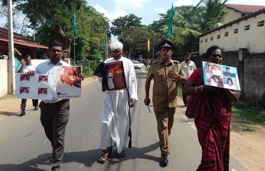 காணாமல் ஆக்கப்பட்ட அருட்தந்தை பிரான்சிஸ் யோசப் எங்கே என்று, கேள்வி எழுப்பி நடத்தப்பட்ட இந்தப் போராட்டத்தில், ஈடுபட்டவர்களின் சார்பில், மூன்று பேரை காவல்துறையினர் சிறிலங்கா அதிபரைச் சந்திப்பதற்காக அழைத்துச் சென்றனர்.