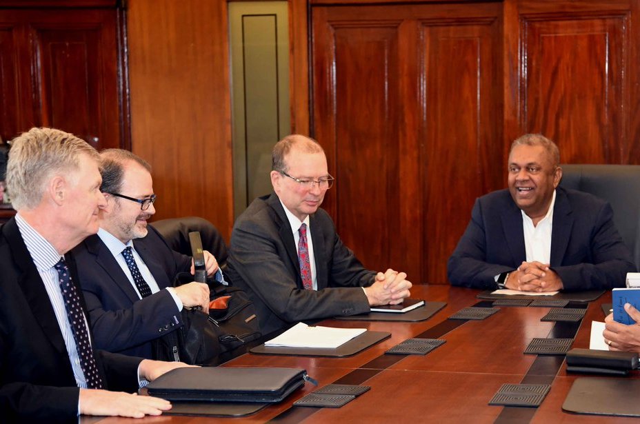 சிறிலங்கா நிதி அமைச்சர் மங்கள சமரவீரவுடன், நல்லிணக்கப் பொறிமுறைகளுக்கான ஒருங்கிணைப்பு செயலகத்தைச் சேர்ந்த மனோ தித்தவெல, நிதி அமைச்சின் செயலர் சமரதுங்க ஆகியோரும் பங்கேற்றனர்.