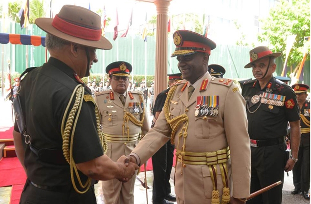 இன்று காலை சிறிலங்கா இராணுவத் தலைமையகத்துக்கு சென்ற இந்திய இராணுவத் தளபதிக்கு, சிறிலங்கா படையினரின் அணிவகுப்பு மரியாதை அளிக்கப்பட்டது.