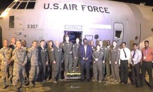 அமெரிக்காவின் நோட்ரிடாம் பல்கலைக்கழகத்தின், தேசிய சமுத்திரவியல் மற்றும் வணிமண்டல நிர்வாக பிரிவின், நிபுணர்களை ஏற்றிக் கொண்டு அமெரிக்க விமானப்படையின் சி-130 விமானம் ஒன்று சிறிலங்காவுக்கு வந்துள்ளது.