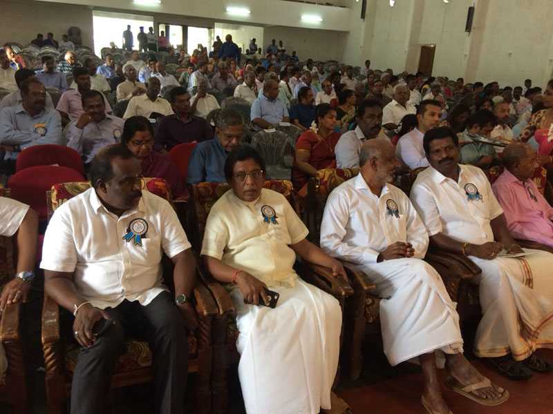 யாழ்ப்பாணத்தில் நேற்று நடந்த, முதலமைச்சர் விக்னேஸ்வரனின், “நீதியரசர் பேசுகிறார்” நூல் வெளியீட்டு விழாவில், நீண்டகால இடைவெளிக்குப் பின்னர் தமிழ் அரசியல் தலைவர்கள், பிரமுகர்கள் ஒன்றாக கலந்து கொண்டனர்.