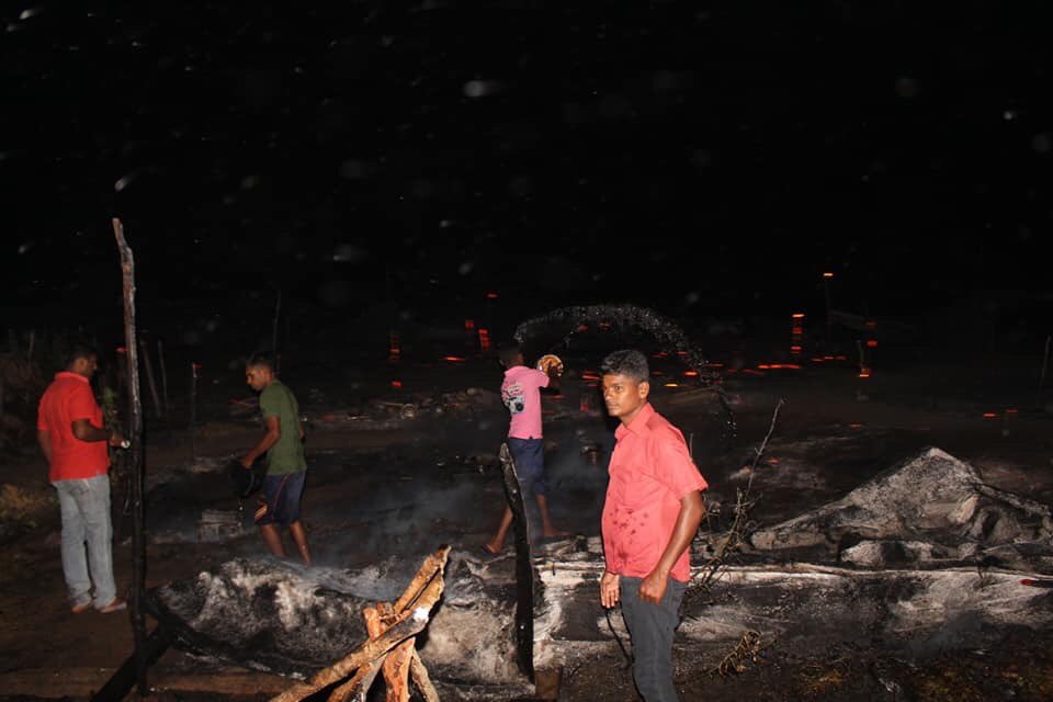 இந்த நிலையில், நேற்றிரவு 11 மணியளவில் நாயாறு பகுதியில் இருந்து தமிழ் மீனவர்களின் வாடிகள், படகுகள், வலைகள் திடீரென தீக்கிரையாக்கப்பட்டன.