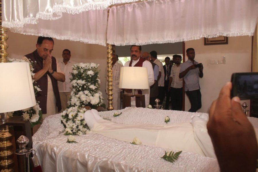 சந்திர ராஜபக்சவின் உடலுக்கு அஞ்சலி செலுத்திய சுப்ரமணியன் சுவாமி, அதையடுத்து மகிந்த ராஜபக்சவை அடுத்த மாதம் புதுடெல்லியில் நடத்தவுள்ள கருத்தரங்கில் உரையாற்ற அழைப்பு விடுத்துள்ளார்.
