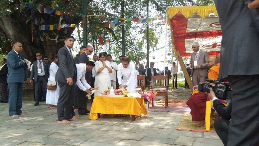 லும்பினியில் உள்ள மாயாதேவி ஆலயம் மற்றும் அசோகரின் தூண் ஆகியவற்றிலும், சிறிலங்கா பௌத்த பிக்குகளால் கட்டப்பட்ட விகாரையிலும் சிறிலங்கா அதிபர் வழிபாடுகளை செய்தார்.