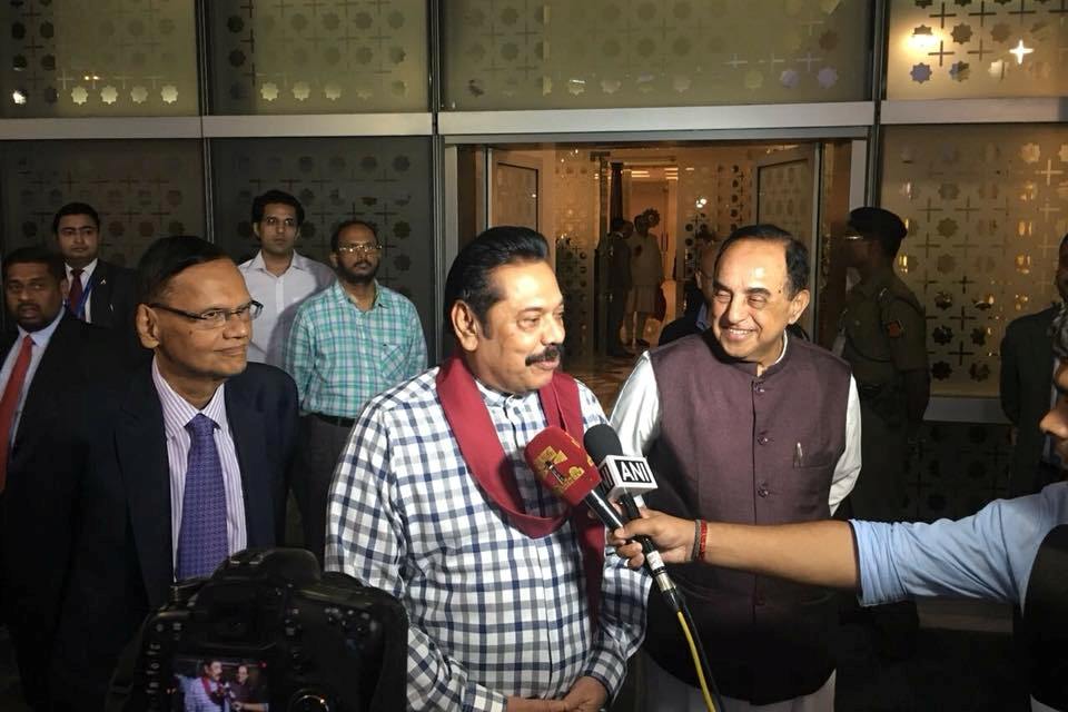 நேற்று புதுடெல்லி சென்றடைந்த மகிந்த ராஜபக்ச மற்றும் குழுவினரை, சுப்ரமணியன் சுவாமி மற்றும் இந்திய அதிகாரிகள் வரவேற்றனர்.