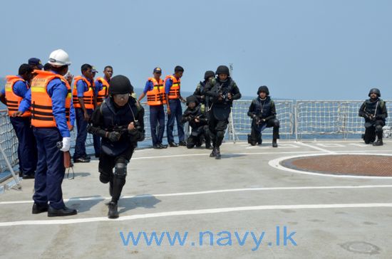 இதன்போது, கூட்டாக கப்பல்களை கையாளுதல், சந்தேகத்துக்குரிய கப்பல்களைத் தேடுதல், தொலைத்தொடர்பு சமிக்ஞைகள் உள்ளிட்டவை தொடர்பாக கூட்டுப் பயிற்சிகள் மேற்கொள்ளப்பட்டன.
