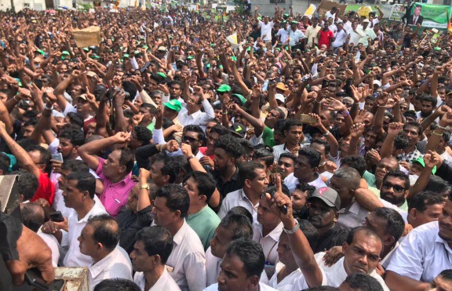 ரணில் விக்கிரமசிங்கவுக்கு ஆதரவு தெரிவித்தும், மகிந்த ராஜபக்சவை பிரதமராக நியமித்த, சிறிலங்கா அதிபருக்கு எதிராகவும், நாடாளுமன்றத்தை உடனடியாக கூட்டக் கோரியும், கொழும்பில் ஐதேக இன்று பாரிய பேரணியை நடத்தி வருகிறது.