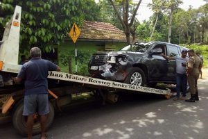 கோத்தாவின் வாகனம் உழவு இயந்திரத்துடன் மோதி விபத்து