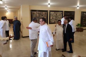 கடந்த சிலநாட்களாக கீரியும் பாம்புமாக மோதிக் கொண்டிருக்கும் மகிந்த-மைத்திரி அணி மற்றும் ஐதேக,  நாடாளுமன்ற உறுப்பினர்கள் இன்று காலை நாடாளுமன்றத்தில் ஒன்றாக கட்டிப்பிடித்து சிரித்துப் பேசிக் கொண்டிருந்ததையும் காண முடிந்தது.