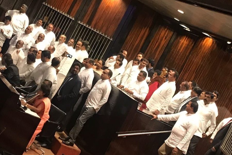 சபாநாயகரின் ஆசனத்தில் ஐக்கிய மக்கள் சுதந்திர முன்னணியின் உறுப்பினர் அருந்திக பெர்னான்டோ அமர்ந்துள்ளதால் மீண்டும் சர்ச்சை வெடித்துள்ளது.