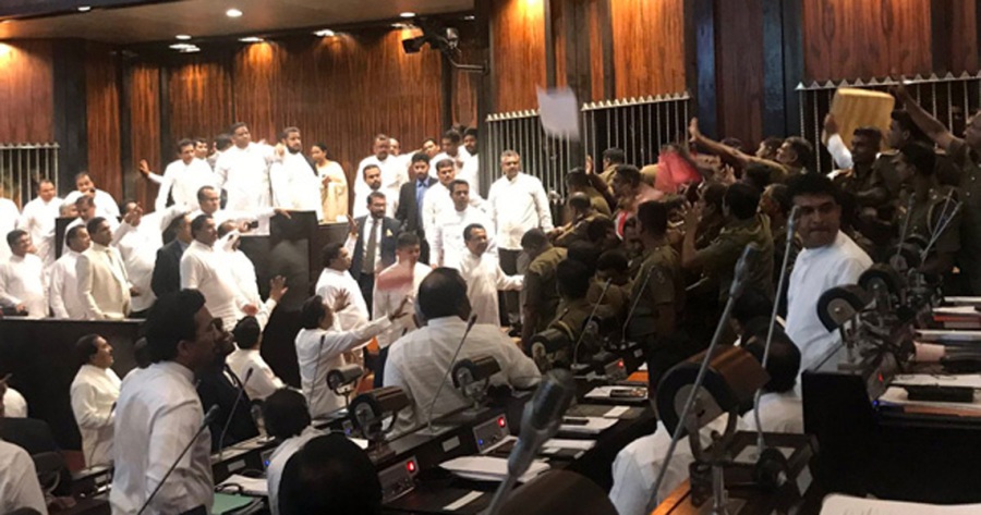 மகிந்த அணியைச் சேர்ந்த உறுப்பினர்கள் சபாநாயகரின் ஆசனத்தை அகற்றிக் கொண்டு சென்றதுடன், அவரது மேசையில் இருந்த ஆவணஙங்கள் மற்றும் பொருட்களால், காவல்துறையினர் மீதும், சபாநாயகர் மீதும் தூக்கி வீசினர்.
