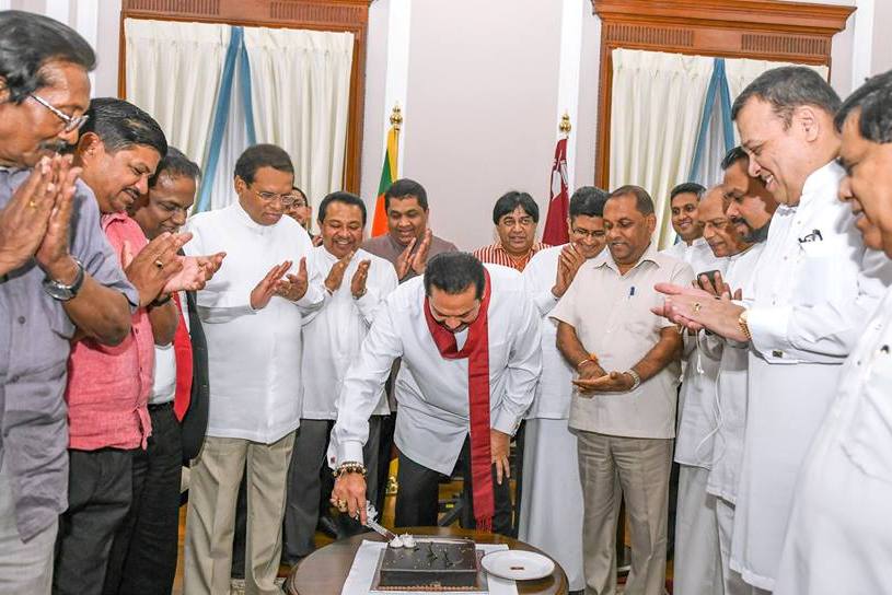 சிறிலங்காவின் சர்ச்சைக்குரிய பிரதமர் மகிந்த ராஜபக்சவின் பிறந்த நாள் நேற்றிரவு அதிபர் செயலகத்தில் கேக் வெட்டி கொண்டாடப்பட்டுள்ளது.